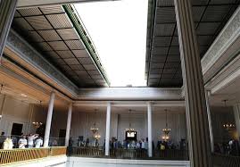 به گزارش تسنیم؛ گفتنی است یکی از ویژگیهای شاخص کاخ اختصاصی نیاوران سقف متحرک آن است که علاوه بر زیبایی و تهویه هوا، در مواقعی نور کاخ را نیز تأمین میکرده است. سازه اصلی روی سقف متحرک، از نوع شیروانی آلومینیومی است که علاوه بر مجهز بودن به تابلوفرمان الکترومکانیکی سه فاز، به سیستم کنترل فاز جهت جلوگیری از دو فاز شدن سیستم موتور گیربکس (جعبه دنده) نیز مجهز است.