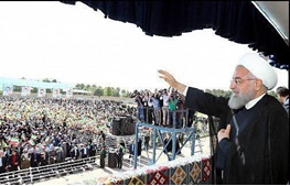 *{در واکنش به شعارها مردم حاضر در ورزشگاه سبزوار}: همه شعارهای شما درست است. ما همه با هم متحد هستیم. ما همه باهم قدمی برداشتیم که مستحکم و درست بوده است. همه مردم همواره از دولت حمایت کردند. من از رهبری و نیروهای مسلح تشکر میکنم. همه ما دست به دست هم دادیم تا به اینجا برسیم. اگر آمریکاییها امروز فکر میکنند که ما سرشان را کلاه گذشتهایم که این فکری به ناحق است، به دلیل وحدت ما بوده است.مردم جهان طی چهار سال و نیم گذشته به ایران به عنوان یک قدرت بزرگ بالیدند. هیچ کس نیست که بگوید کار ما اشتباه بوده است، به جز آمریکا، رژیم صهیونیستی و عربستان که میگویند برجام اشتباه بوده است.