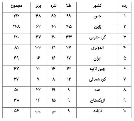 جدول مدالی بازیهای آسیایی ۲۰۱۸ اندونزی ( تا ساعت ۱۰:۳۰):
