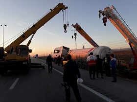مهدیخانی ادامه داد: در یک اقدام سریع یک جرثقیل 40 تنی از نیروگاه شهید رجایی و 2 جرثقیل نیز از بخش خصوصی به صحنه حادثه فراخوانده و تریلر به حالت عادی برگردانده شد.