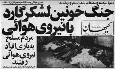 گروهی از مردم به افراد نیروی هوایی کمک میکنند. ما خبرنگاران کیهان دهها نفر از افرادی را که برگ پایان خدمت در دستشان بوده و میخواستند اسلحه بگیرند دیدیم. آنها فریاد میزدند «جواب اسلحه را با اسلحه باید داد». تعداد زیادی زن دیدیم که میگفتند ما از برادرانمان حمایت میکنیم.