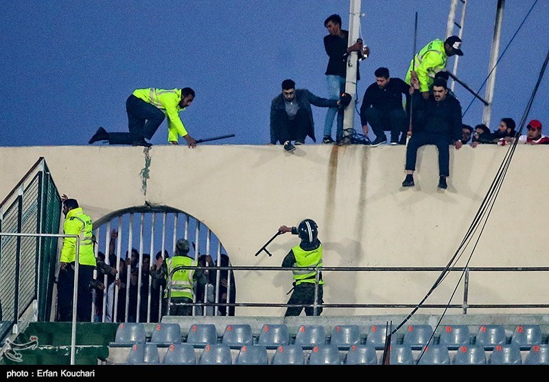 کار از پرتاب سنگ و بطری گذشت و سربازان نیروی‌انتظامی را از روی سکوها به پیست دور زمین پرتاب کردند! حالا فضای مجازی به عرصه جدال تازه‌ای تبدیل شده است. طرفین با انتشار عکس‌های خون‌آلود تلاش دارند اثبات کنند دیگری این کار را کرده وگرنه ما عصاره فضل و فرهنگیم و امکان ندارد حتی فحاشی کنیم!