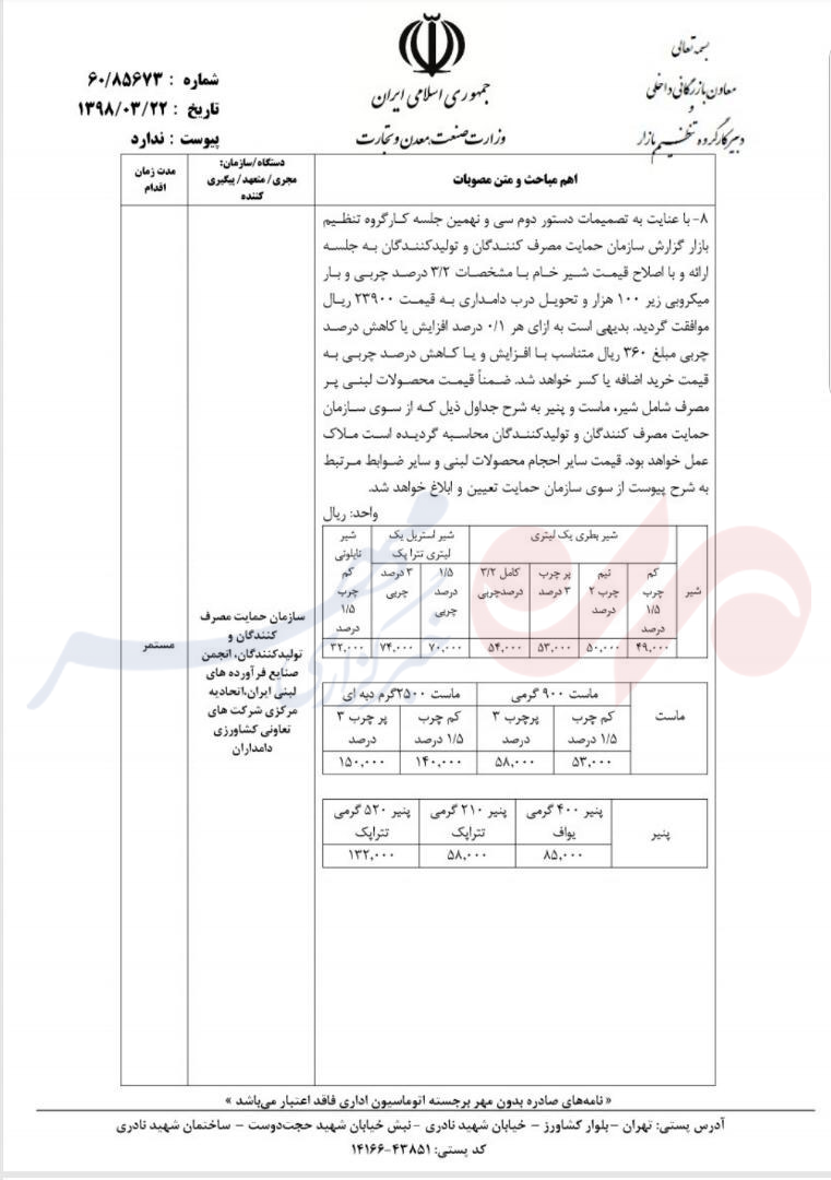 بر اساس این گزارش، قیمت شیرخام حدود ۱۹ درصد افزایش داشته است.