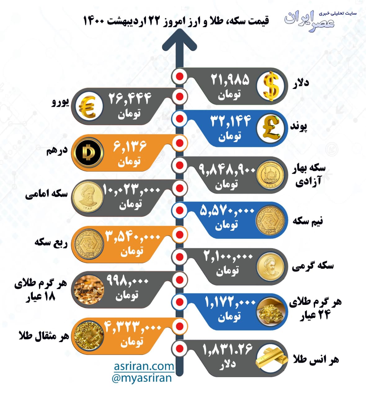 قیمت سکه، طلا و ارز، امروز ۲۲ اردیبهشت