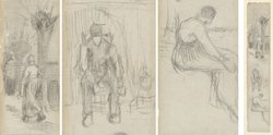 طراحیهایی که با مداد بر روی این تکه کاغذ خلق شدهاند ناشیانه هستند؛ چراکه مدت کمی پس از آنکه «ونگوگ» به دنیای هنر قدم گذاشته بود خلق شدهاند. اما با توجه به اینکه تعداد کمی از طراحیهای ابتدایی این هنرمند باقی ماندهاند این اثر از اهمیت برخوردار است. ممکن است قدمت این طراحی سهگانه در پاییز سال ۱۸۸۱ خلق شده باشد.