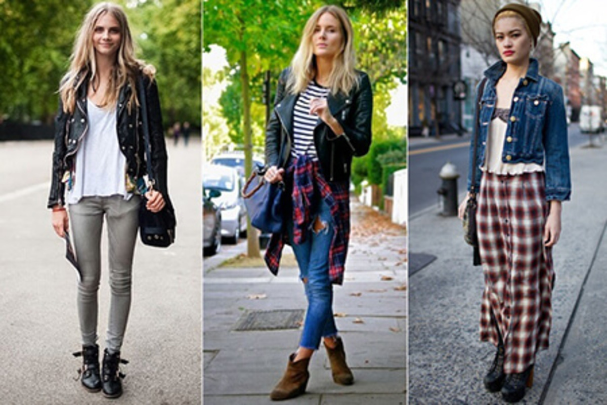 در دهه 1990، لباس پوشیدن یک هنجار قابل قبول بود. برای کفش ها، زنان شروع به پوشیدن چکمه های رزمی ضخیم و دکتر مارتینز کردند. آن ها معمولاً لباس های اسلیپ با پارچه های فلانل، فلانل و شلوار جین پاره و چهارخانه می پوشیدند. شلوار جین پاره پاره محبوب بود. این لباس با جواهرات ساده مانند چوکر و گوشواره حلقه ای و رژ لب تیره و پر رنگ ست می شد. شلوار جین دمپا گشاد، از دهه 1970 دوباره در سال 1995 به همراه تی شرت عروسکی محبوب شد. هنگامی که فلانل ها را می پوشیدند، آنها را بزرگ می کردند و هنگامی که برای پوشیدن آنها خیلی گرم می شد، آنها را به دور کمر می بستند. مدل موهای نیمه باز و بسته و موهای نامرتب بود که این تصور را ایجاد می کرد که هیچ کاری برای آن انجام نشده است.