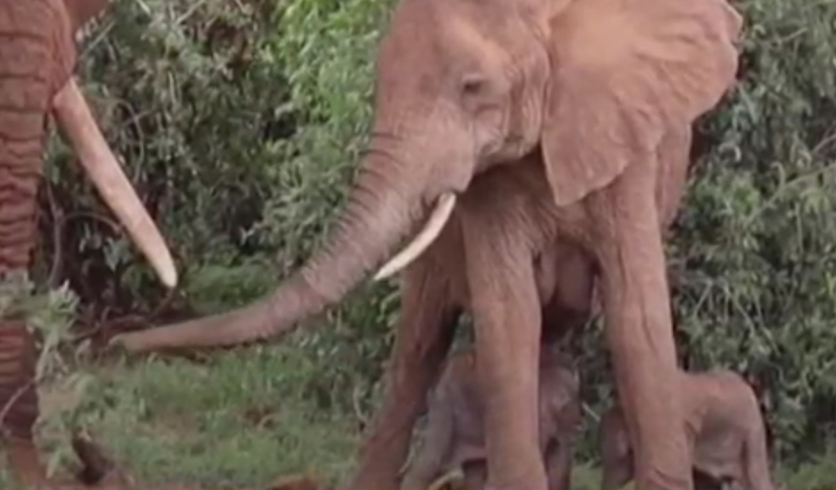 یک فیل آفریقایی، پس از ۲۲ ماه بارداری در پدیده‌ای نادر دوقلو زایید.